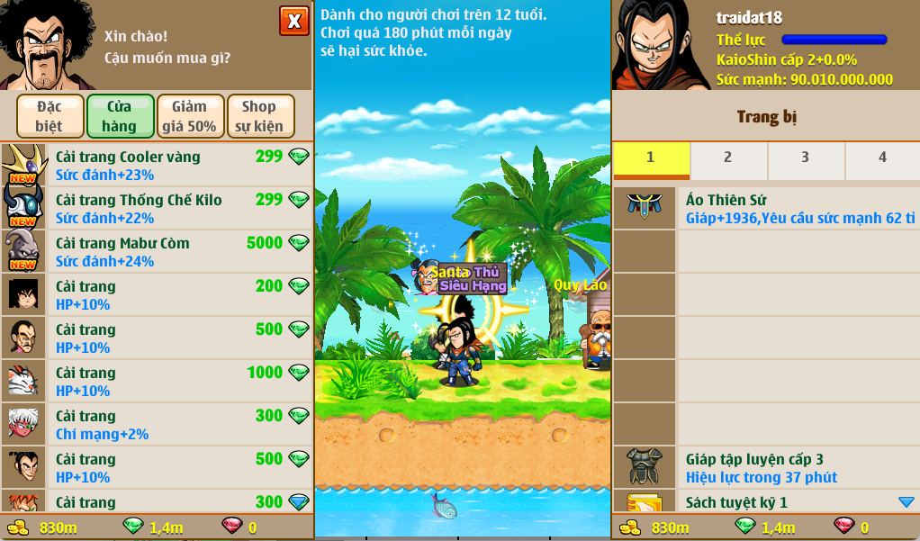 + Khi các nhân vật dưới 150 triệu sức mạnh, các nhân vật có thể tham gia Võ đài sinh tử, tại Bà Hạt Mít ở Đảo kame, khi tham gia lần đầu sẽ không tốn phí